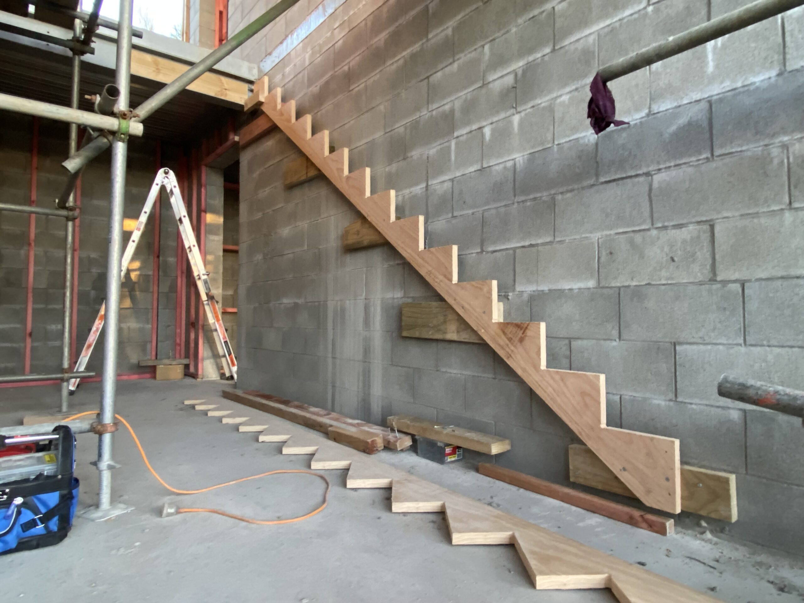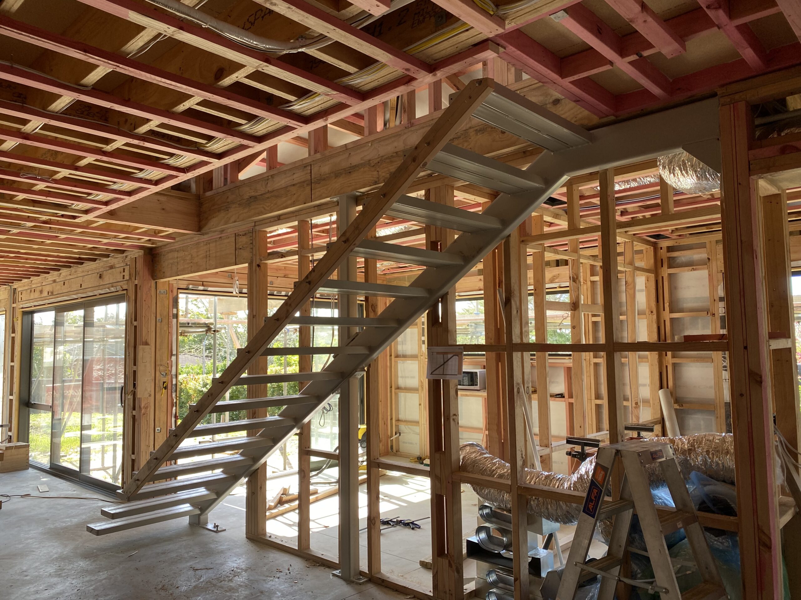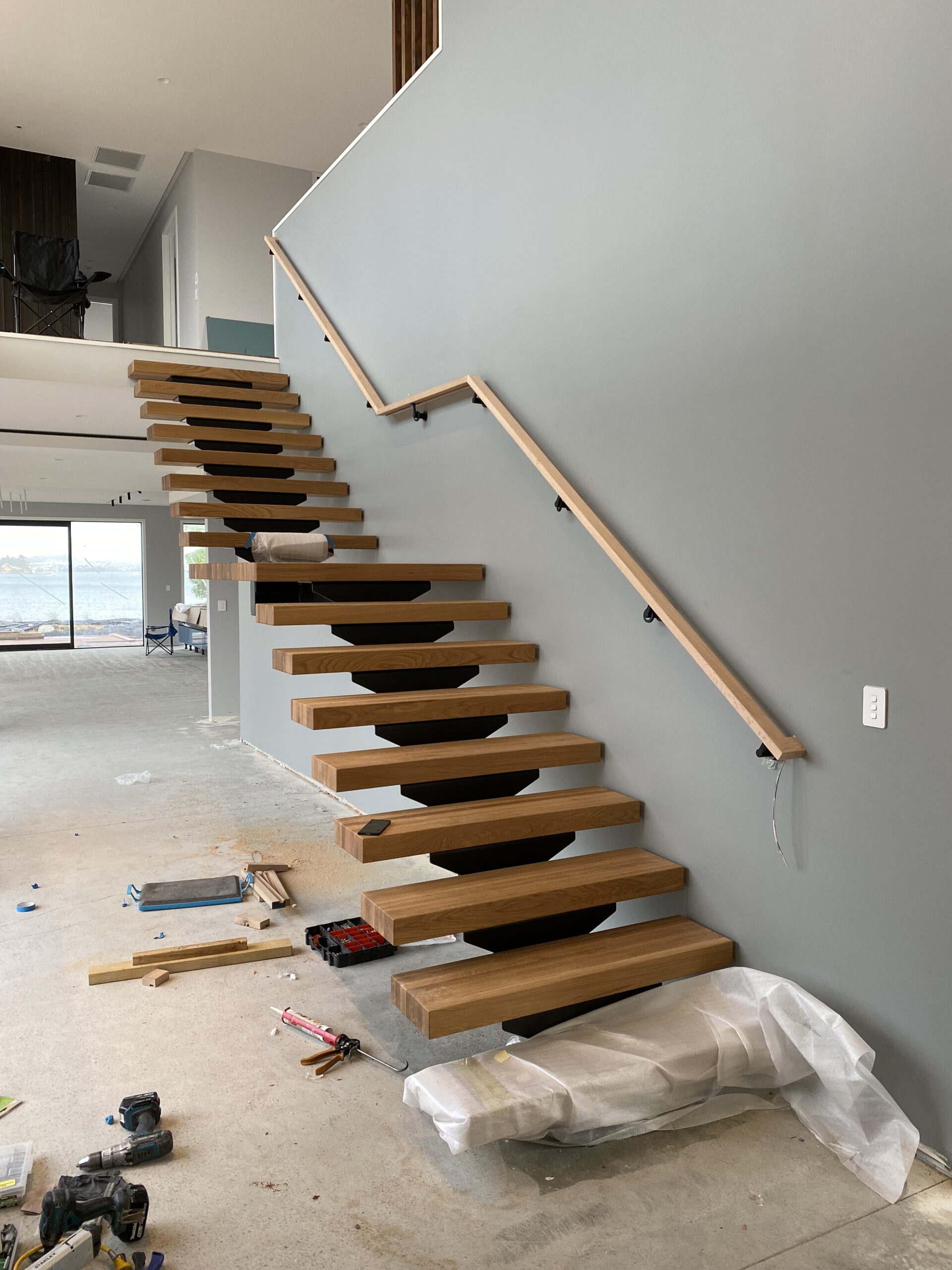 Feature stair steel stringer installations, solid timber feature stair tread installations, floating timber box tread installations and timber screen installations.